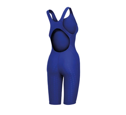The fabric is highly structured, ensuring excellent shape retention, optimal support and targeted compression to aid muscular activation, and performance. The suit is designed to mould to the body like a second skin with sleek arrow design, flatlock low profile seams for a snug fit, and stylish appearance. The open back design provides unrestricted movement for all swimmers.